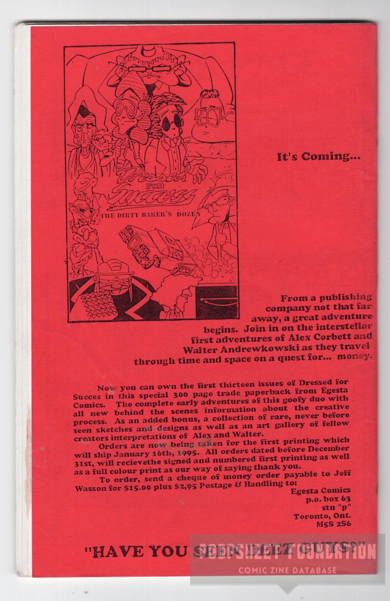 Contents include small press reviews and news; columns by Sam Gafford, Nik Dirga, and Troy Hickman; a page of comics; an interview with Chris Howard and Jeff Wasson (Dressed for Success); a sketch jam page from the 1994 Toronto Comic Book Extravaganza; a preview of Troubleshooters, Inc. from Nightwolf Graphics; and letters from Bill Mallory, Steve McArdle, Eric Ketzan, Jerry Smith, Pam Bliss, and Hilary Leung.