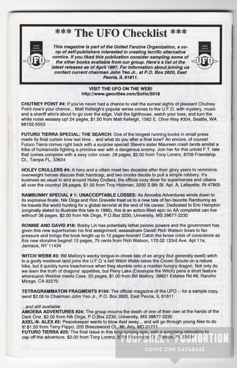 United Fanzine Organization (UFO) / Small Press Syndicate (SPS) memberzine.